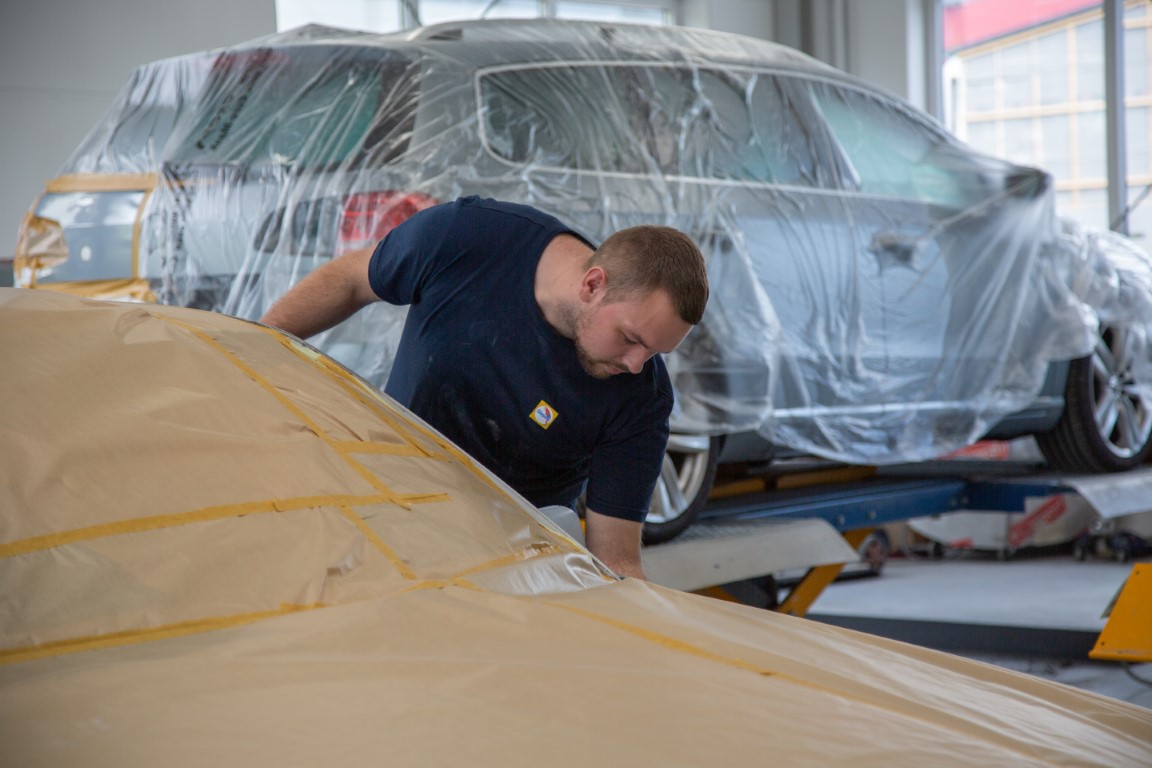 Mittels Temperatur, die hinzugefügt wird, wird die Lackierung widerstandsfähig gegen äußere Einflüsse. In der Lackierkabine sorgt die Wärme dafür, dass sich die Kunstharze verbinden und ein Netz bilden, welches die Karosserie überzieht.
